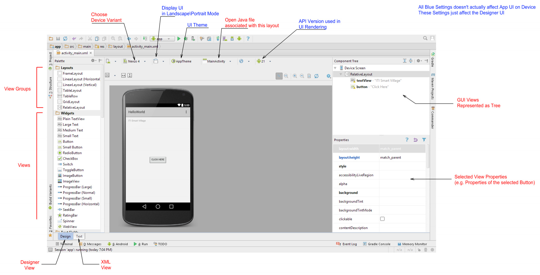 Eclipse et plugin ADTAnciennement, l'IDE officiel pour le développement Android, il propose une interface graphique permettant d'utiliser les outils du SDK d'Android. Il comporte un éditeur visuel, des outils de débuggage, de compilation, de packaging ou encore le lancement d'un émulateur. Il se base sur le langage Java. Il était fourni par Google, aujourd'hui, il est mis à jour par la communauté.